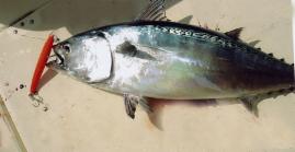 Ya hemos diferenciado al thunnus alalunga o bonito del norte, especie de fisonomía más fina y alargada, con unas aletas dorsales mucho mas largas, de carne rosada y jugosa, y con un peso que a niveles comerciales raramente excede de los 40 kgs., aunque puedan existir ejemplares que superen los 60 kgs. La talla mas demandada comercialmente es la de 8 a 15 kgs. Nuestra “costera” (campaña del bonito) se realiza en el Cantábrico entre los meses de Junio y Octubre, y es cuando mas apreciamos el sabor de su carne, consecuencia de la alimentación, la actividad, la temperatura de las aguas y el tamaño del pescado. Cabe destacar que en nuestras aguas, el bonito se pesca de manera artesanal, con anzuelo, evitando en la medida de las posibilidades el estrés del animal, y potenciando consecuentemente la calidad de su extraordinaria carne.